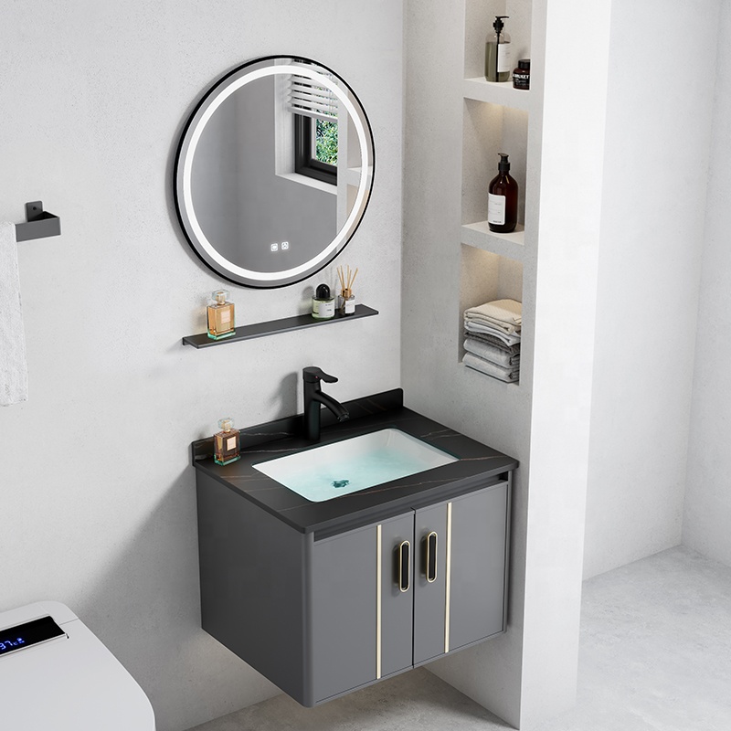 핫 세일 욕실 화장대 캐비닛 벽걸이 형 싱글 싱크 스마트 미러 마감 방수 아파트